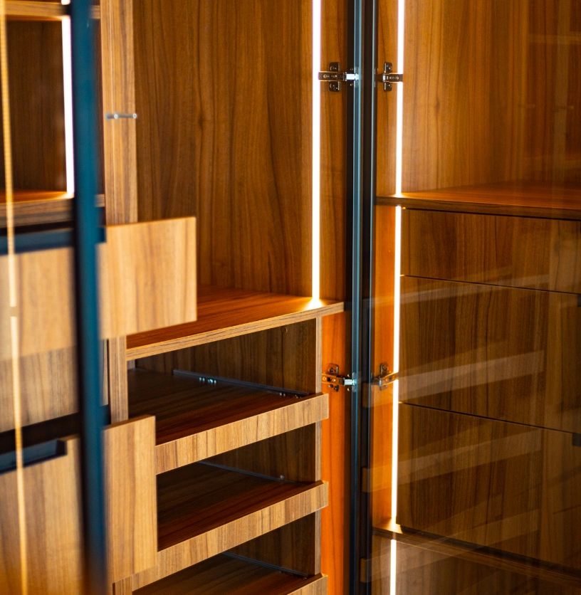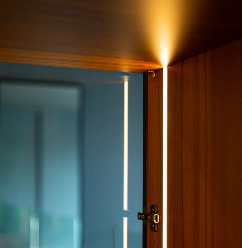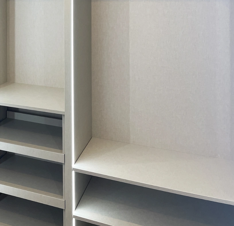 A iluminação embutida eleva o design e a funcionalidade dos closets Lar Darte, tornando-os mais práticos, modernos e confortáveis. Com tecnologia LED e integração discreta, criamos uma iluminação uniforme e eficiente que valoriza cada detalhe.