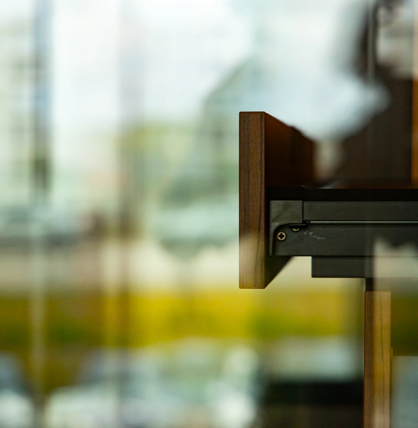 Puxadores embutidos, portas de correr silenciosas, perfis metálicos e soluções feitas à medida.