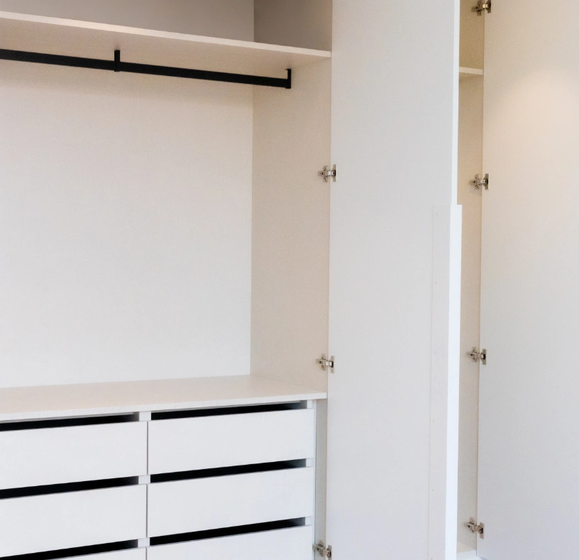 Um closet à medida maximiza o espaço disponível, melhora a organização e permite personalizar totalmente o design, os materiais e os acabamentos. Oferece durabilidade superior, mais funcionalidade e valor acrescentado à sua casa.