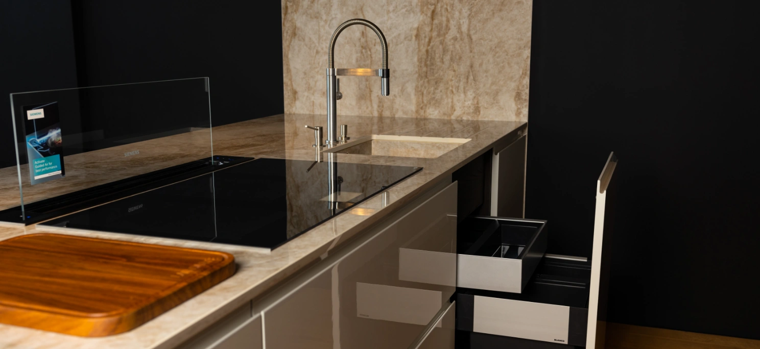 Ideais para bancadas, combinam elevada resistência com um aspeto sofisticado, reforçando o impacto visual.