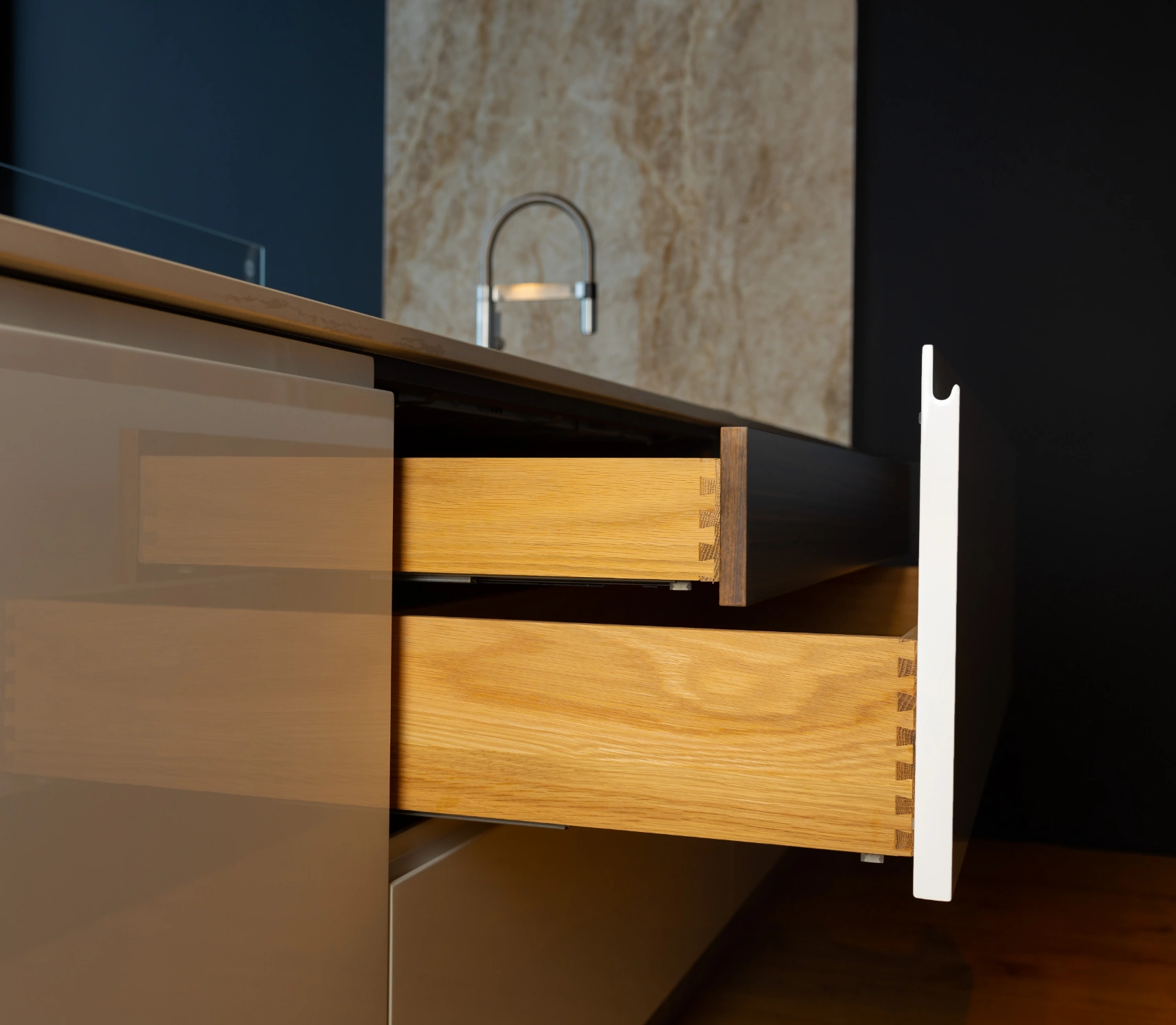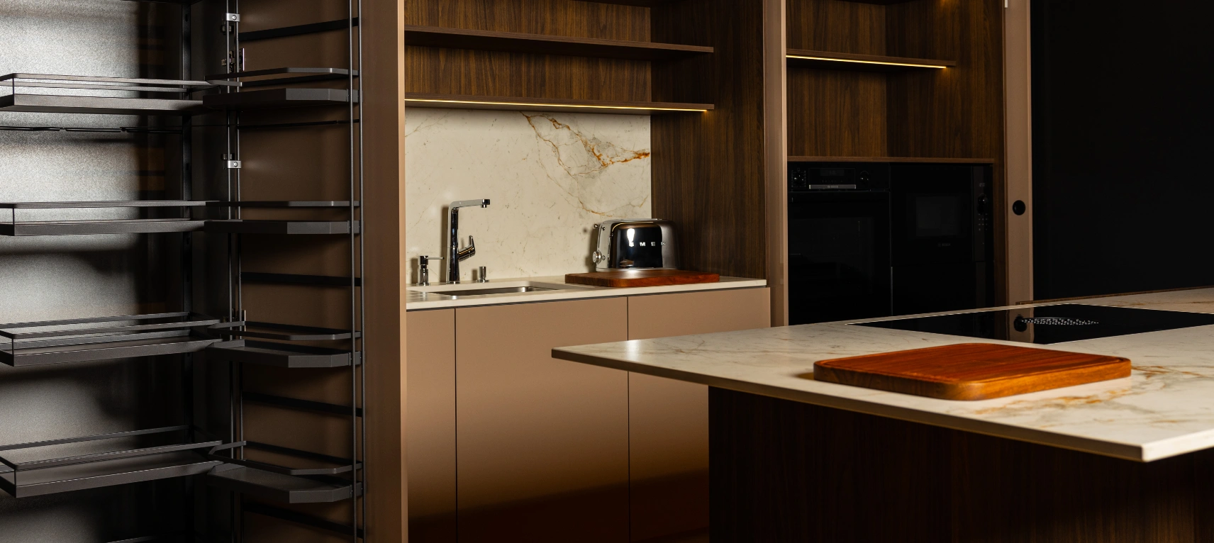 Atua como peça de design, valorizando a estética e a continuidade visual, especialmente em cozinhas open space ou ambientes integrados.