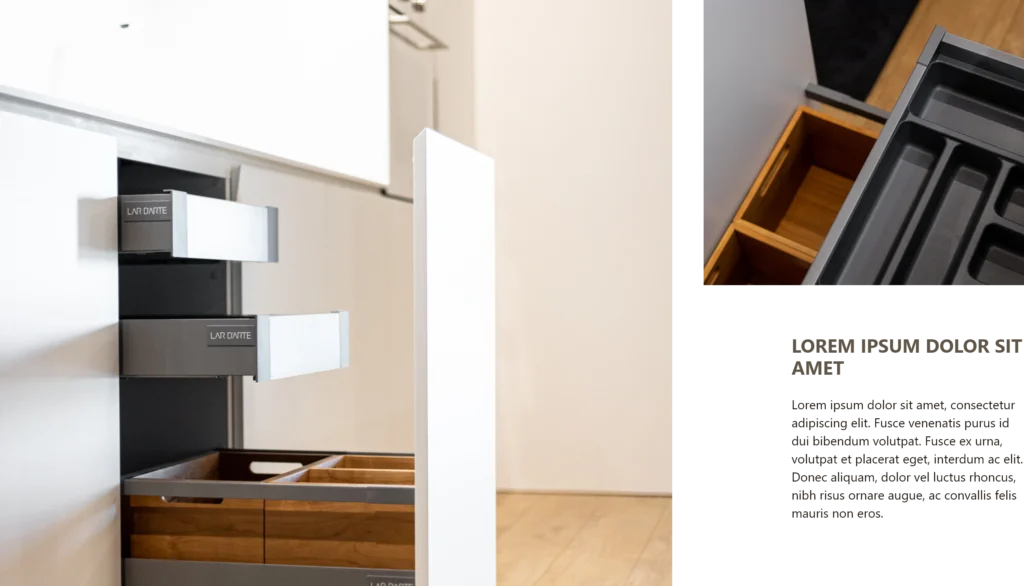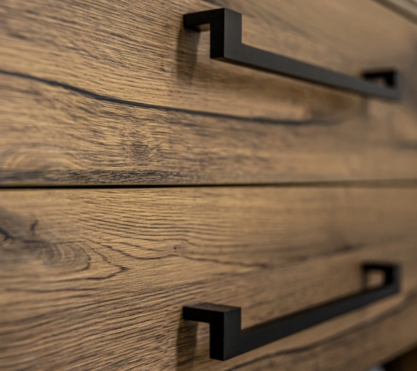 Selecionamos materiais duráveis e acabamentos que criam harmonia com o restante mobiliário, valorizando o ambiente.
