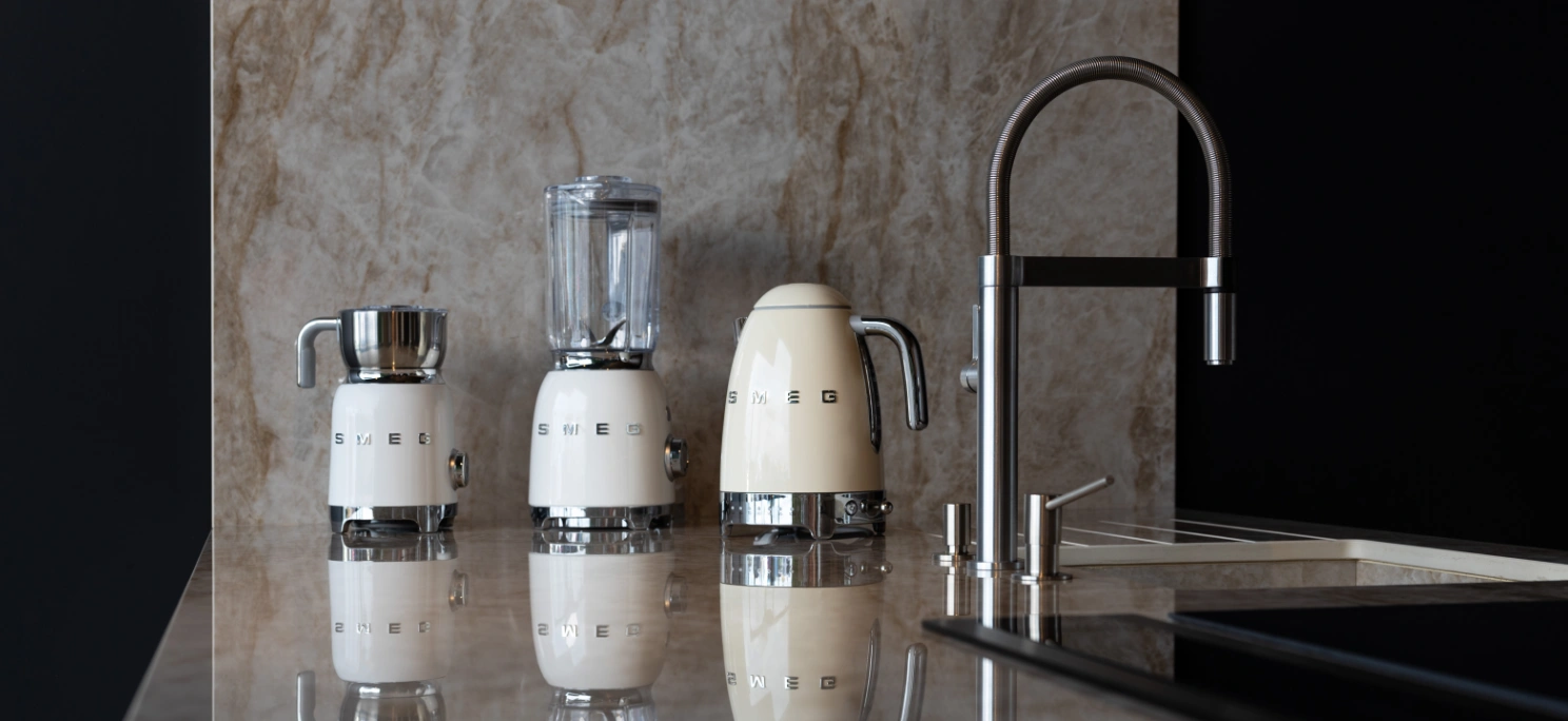 Na Lar Darte integramos eletrodomésticos Smeg nas cozinhas de luxo, combinando tecnologia avançada, eficiência e um design icónico reconhecido mundialmente. Esta parceria permite criar cozinhas premium onde o design elegante e a inovação tecnológica trabalham lado a lado, elevando cada cozinha a um patamar superior de sofisticação.