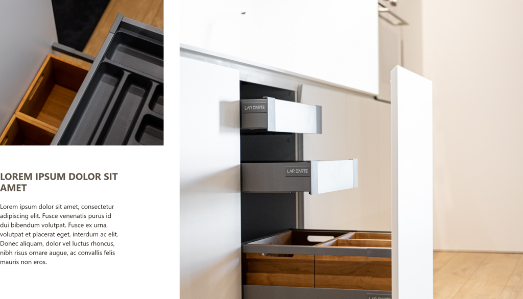 Permite incorporar ilhas, penínsulas e sistemas inteligentes de arrumação, ajustando o projeto às necessidades de cada cliente, desde quem cozinha profissionalmente e precisa de fluxo de trabalho rápido até quem procura soluções eficientes para espaços compactos.